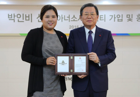 박인비는 "한계에 도전한다는 마음으로 출전한 이번 올림픽에서 금메달을 딸 수 있었던 것은 많은 국민의 성원 덕분이었다"며 "어려운 시기를 이겨낼 힘을 준 많은 분의 격려와 사랑에 보답하고자 가입을 결심했다"고 밝혔다.