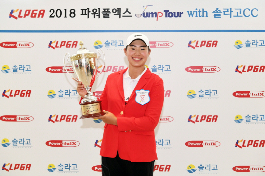 성현정은 9일 충남 태안 현대솔라고 컨트리클럽(파72/6282야드) 솔-아웃코스(OUT), 솔-인코스(IN)에서 열린 '2018 파워풀엑스 점프투어 with 솔라고CC 15차전(총상금 3000만 원, 우승 상금 600만 원)' 최종라운드에서 우승했다. 1라운드 5언더파 67타, 공동 5위로 최종라운드에 돌입한 성현정은 전반에만 이글 1개와 버디 2개를 묶어 4타를 줄이며 선두에 올라선 뒤 후반에도 4개의 버디를 몰아치며 1위를 굳혔다. 최종합계 13언더파 131타(67-64).