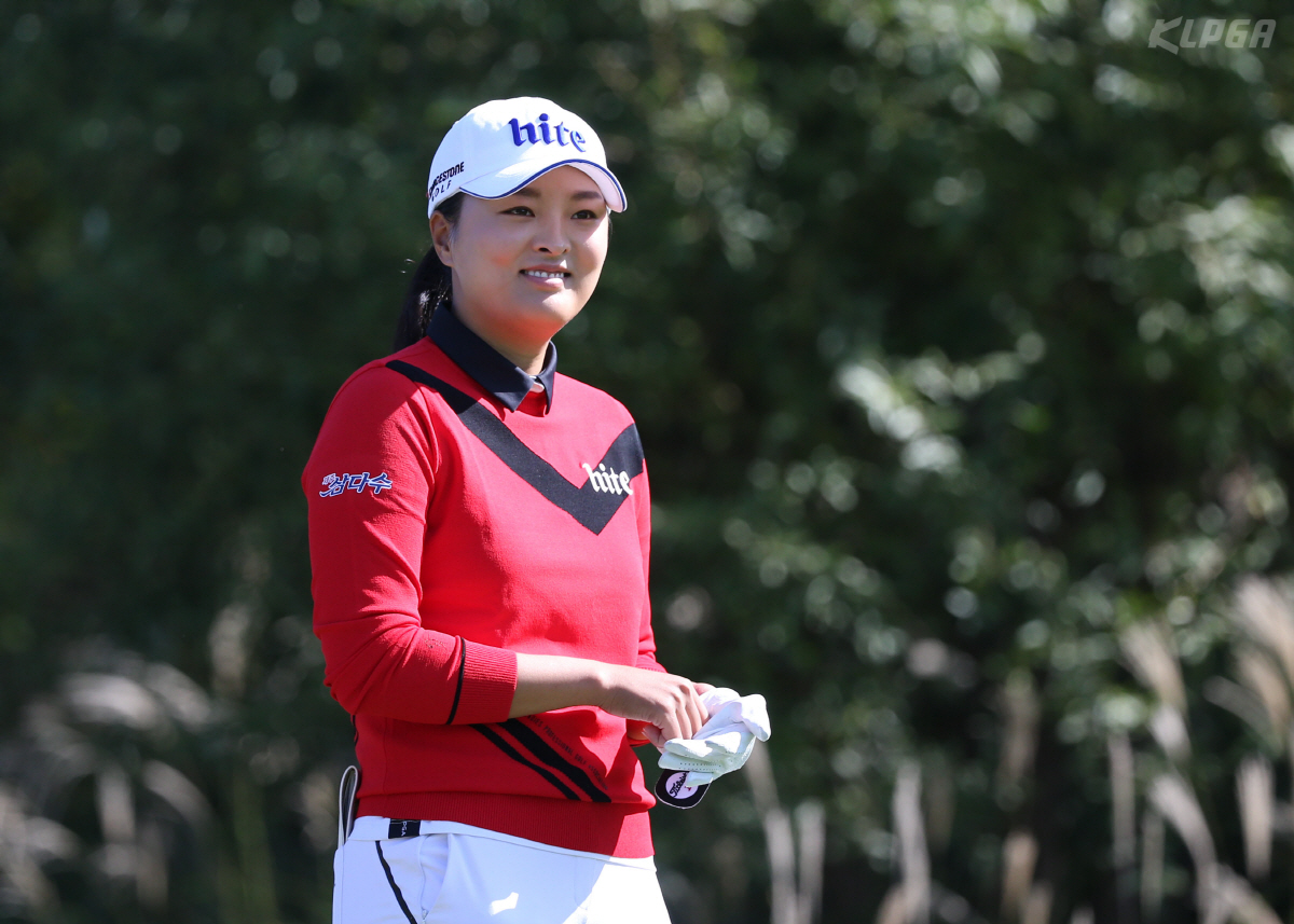 고진영 '여유로운 미소' (서울=연합뉴스) 11일 경기 여주 블루헤런CC에서 열린 '제20회 하이트진로 챔피언십' 2라운드에서 고진영이 3번홀 티샷 전 코스를 바라보고 있다. 2019.10.11 [KLPGA 제공. 재판매 및 DB 금지] photo@yna.co.kr (끝) <저작권자(c) 연합뉴스, 무단 전재-재배포 금지>