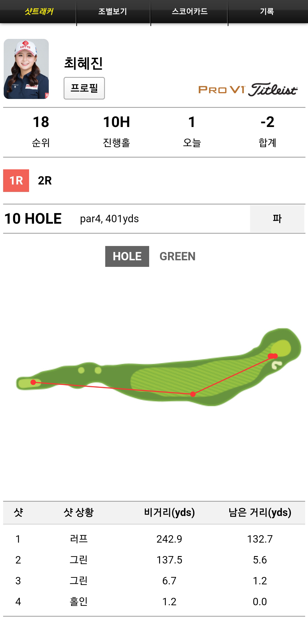 순위와 스코어만 확인할 수 있었던 기존 리더보드에 거리 데이터와 샷 위치 이미지를 추가해 생동감을 더했다. 또한, 선수들의 거리 데이터를 숫자와 그래픽으로 확인할 수 있으며, 선수 개인별, 조별로도 확인할 수 있어 팬들의 시청 편의성을 높였다.
