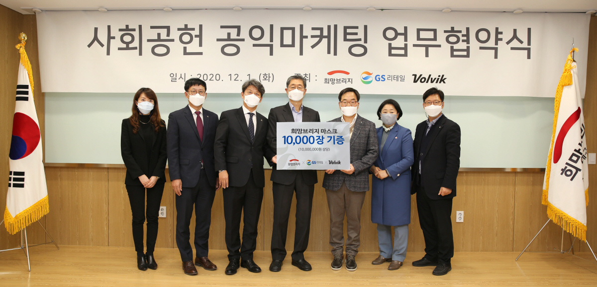 GS리테일과 볼빅이 마스크 1만 개를 공동 기부하고, 이를 '희망브리지' 전국재해구호협회가 어려움에 처한 이웃들에게 제공할 계획이다.