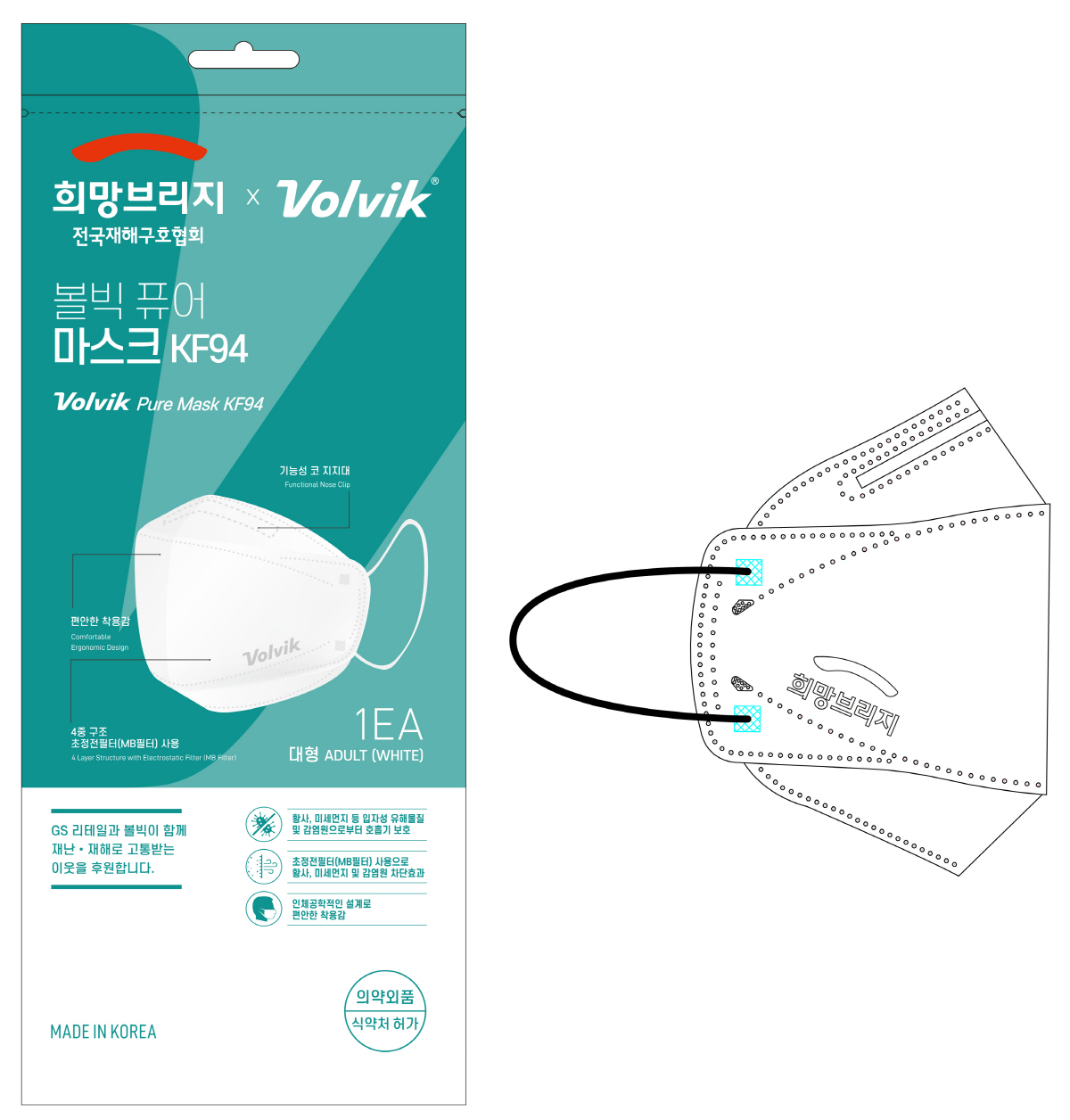 협약의 의미를 담아 10일 출시되는 상품은 '볼빅퓨어마스크KF94'. 초정전 MB필터를 사용한 4중 구조로 황사, 미세먼지 등 유해물질 및 감염원을 차단하고, 인체공학적 설계로 편안한 착용감을 제공한다.