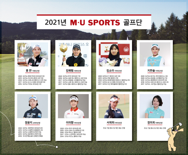 엠유스포츠는 기존의 홍 란(35) 지한솔(25) 정윤지(21) 이미향(28) 서재희(28) 정미희(32) 프로와 2021년에도 계약을 이어가고 김해림(32)과 김소이(27)를 새롭게 영입해 한층 탄탄해진 골프단을 구성했다.