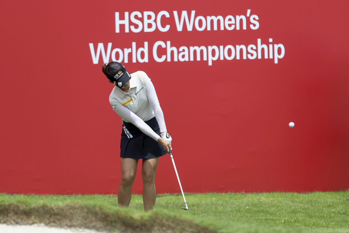 In Gee Chun of South Korea plays a shot on the 18th hole during her final round at the Women's World Championship of golf at Sentosa Golf Club in Singapore, Sunday, March 6, 2022. (AP Photo/Paul Miller) <저작권자(c) 연합뉴스, 무단 전재-재배포 금지>