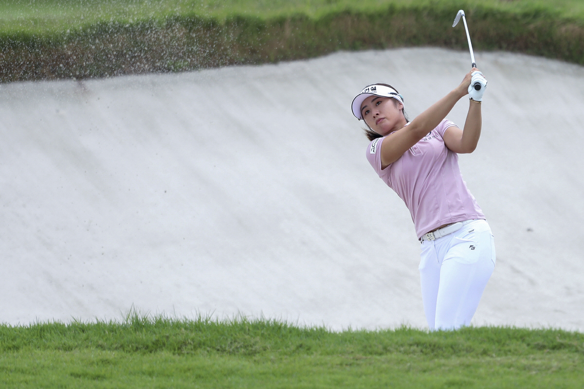 Jeongeun Lee of South Korea plays a shot on the 13th hole during her final round at the Women's World Championship of golf at Sentosa Golf Club in Singapore, Sunday, March 6, 2022. (AP Photo/Paul Miller)