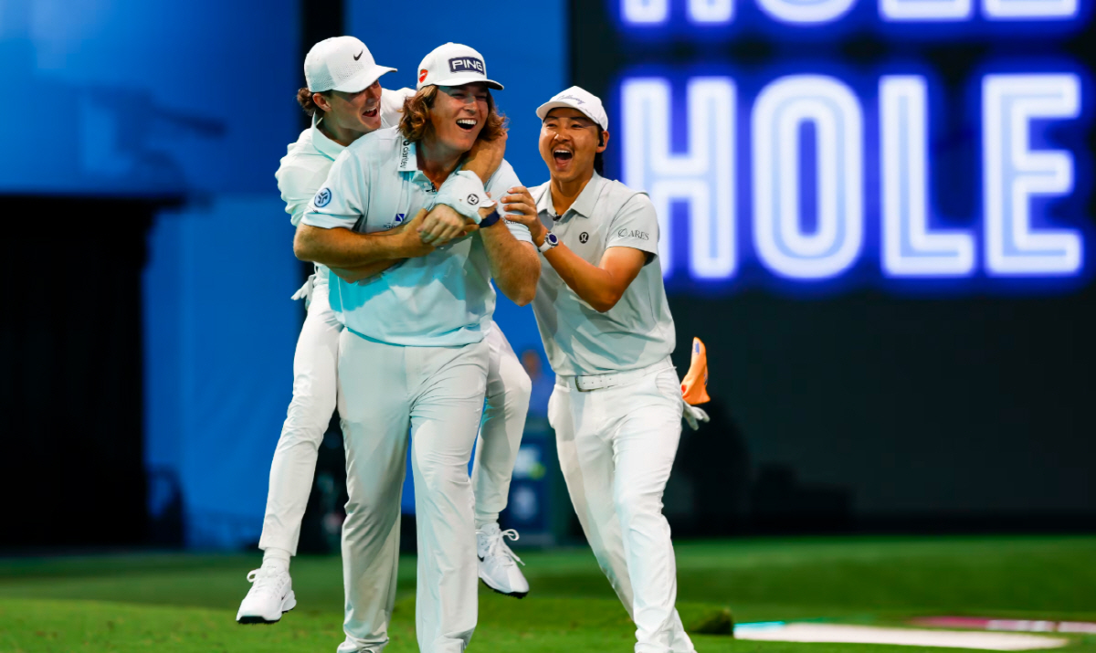 주인공은 올해 PGA투어에 데뷔한 닐 쉬플리(26·미국). 이민우, 루크 클랜턴과 더 베이 골프 클럽에서 한 팀을 이룬 쉬플리는 11일(한국시각) 미국 플로리다주 팜비치가든의 소파이센터에서 열린 LA골프클럽과의 TGL경기에서 홀인원을 기록했다.
