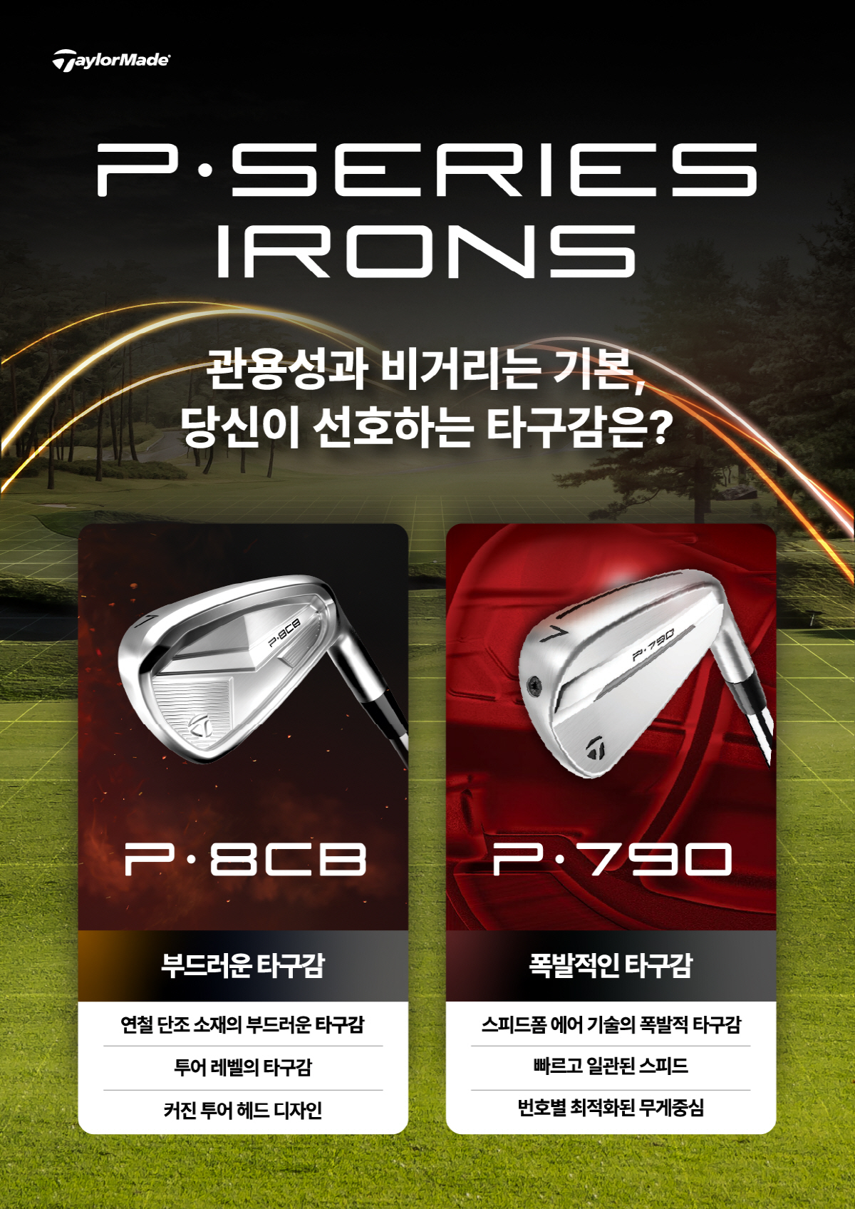 관용성과 비거리를 기본으로 하고 있는 주력 모델인 P·790과 P·8CB 아이언은 각각의 설계 특성을 기반으로 제품 라인업을 구성하고 있다.