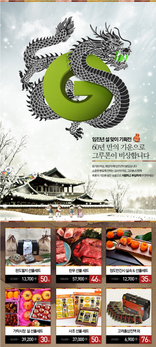 그루폰코리아는 '합리적 가격'의 설 특별전을 11일부터 19일까지 진행한다. 국내산 1등급 한우 선물세트를 정상가격 10만8000원에서 46% 할인된 5만7900원, 청도 햇 반건시 선물세트를 정상가격 2만2500원에서 36% 할인된 1만4300원, 참치ㆍ참기름 등으로 구성된 사조해표 선물세트를 48% 할인된 1만6000원부터 선보일 예정. 판매하는 6종의 선물세트 중 최대 할인율은 76%에 달한다. 특히 가락시장의 과일, 굴비 등 신선식품 선물세트를 30% 할인된 가격에 판매할 예정이다. 11일부터 19일까지의 기간 중 고객이 원하는 날짜에 배송해주는 배송일자 사전예약제를 시행, 고객 편의성을 높인 게 특징이다.그루폰코리아 관계자는 "부담스러운 명절 물가상승을 소셜커머스를 이용하며 현명하게 극복 할 수 있을 것"이라고 말했다.