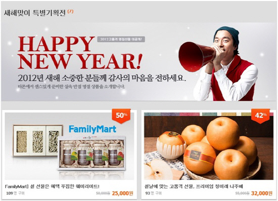 설 선물을 싸게 살 수 있을 것 같다. 소셜네트워크 업체들이 앞다퉈 대폭 할인된 '2012 설 선물 특별 기획전'에 나섰다.