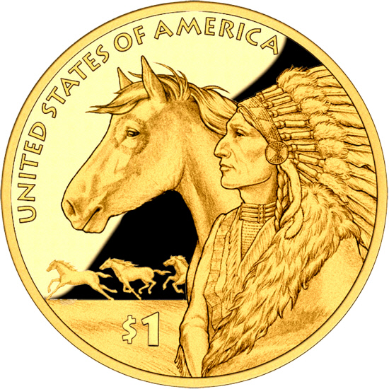 미국조폐국 관계자는 "말이라는 동물은 미국에게 개척과 개발의 상징이라고 말할 수 있다"며 "그들의 노력을 치하하는 기념으로 말과 인디언을 2012년 1달러 동전에 새기기로 결정했다"고 밝혔다.