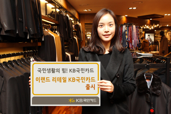 국민생활의 힘', KB국민카드(www.kbcard.com/사장 최기의)는 NC 백화점, 뉴코아아울렛, 이천일 아울렛 등 이랜드리테일 할인 서비스와 학원업종, 패밀리레스토랑 할인 서비스를 제공하는 『이랜드리테일 KB국민카드』를 19일 출시한다.