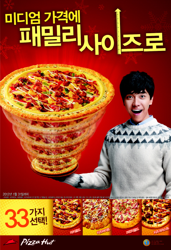 1) 한국 피자헛 <미디움 피자 주문 시 패밀리 사이즈로>