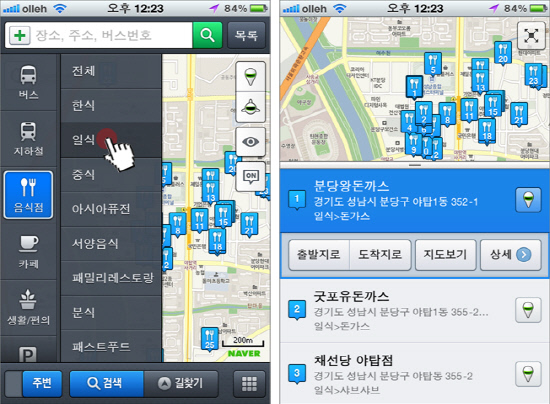 한편, 네이버 지도 앱의 안드로이드 버전은 안드로이드 마켓이나 업데이트(기존 사용자)를 통해 즉시 사용 가능하며, 아이폰용 지도 앱은 앱스토어 내 등록 신청이 완료돼 조만간 이용자에게 서비스될 것으로 보인다. 송진현 기자 jhsong@sportschosun.com