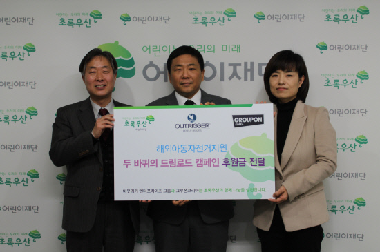 아웃리거 엔터프라이즈 그룹(www.outrigger.com)은 최근 그루폰 코리아와 진행한 자선 경매 수익금을 초록우산 어린이 재단에 기부하는 전달식을 가졌다. 전달된 후원금은 해외아동 자전거 지원사업의 일환으로 '두 바퀴의 드림로드 캠페인 후원금'으로 쓰일 예정이다. 지난 달 10일부터 일주일 동안 진행된 아웃리거 자선경매는 짧은 시간 만에 모든 호텔이 판매되는 등 성황을 이뤘다.