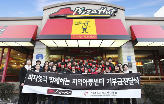 한국 피자헛(www.pizzahut.co.kr, 대표 이승일)이 와우 박스 게릴라 이벤트로 발생한 450만원의 직원 활동비 전액을 부스러기사랑나눔회를 통해 지역아동센터에 기부했다.