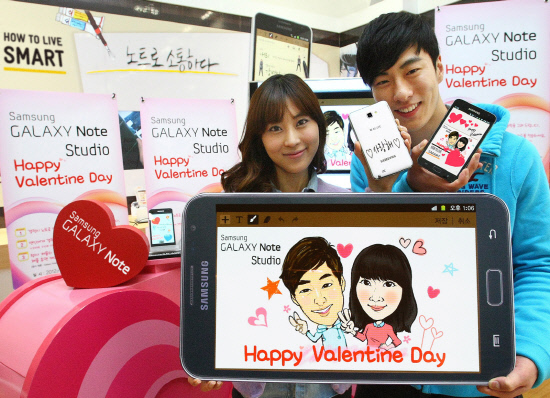 삼성전자는 발렌타인 데이를 맞이해 14일까지 서울 삼성동 갤럭시존에서 갤럭시 노트로 커플 캐리커처를 그려주고, 갤럭시 노트 후면 커버에 커플 메시지를 새겨주고, 커플들이 갤럭시 노트에 직접 꾸민 손글씨 발렌타인데이 카드를 메일로 보내주는 등 다양한 커플 이벤트를 진행하며 호응을 얻고 있다.