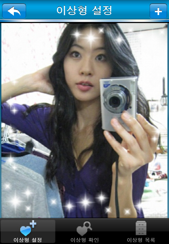 특히 핵심기능으로 설정된 이상형의 정보를 '두근두근 서버'로 전송하면 '두근두근 서버'에 저장된 일반사용자들의 프로필과 비교하여 이상형과 닮은 사람을 찾아준다. 이와 같이 프로필 업로드 기능을 통해 자신의 프로필을 올려 타인의 이상형으로 선정되면 선정된 정보를 이용하여 이상형 랭킹에 반영된다.