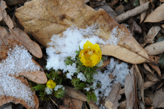 입춘이 지나면 언 땅 속에서 움을 틔워 모습을 드러내는 꽃이 있다. 바로 복수초(福壽草)다. 때문에 복수초는 눈색이꽃, 얼음꽃, 얼음새꽃 등의 별칭도 지녔다. 복수초의 매력은 특유의 강인한 생명력이다. 이른 봄 잔설을 뒤집어쓰고 노랗고도 아름다운 꽃을 피워내 생명에 대한 경외와 삶의 의지를 불어넣어준다. 복수초는 선명한 노란색의 꽃과 초록 잎의 조화로 그저 바라보는 것만으로도 밝고 화사한 기운을 얻는다. 그래서 동양에서는 꽃말도 '영원한 행복'이다. 또 그 이름처럼 복(福)과 장수(壽)를 기원하는 꽃으로도 통한다.
