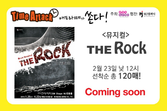 앱디스코(대표 정수환)는 23일 낮 12시부터 30분간 총 60명에게 선착순 무료로 뮤지컬 'The Rock'을 감상할 수 있는 티켓을 증정하는 타임어택 이벤트를 진행한다. 응모만으로 인기 뮤지컬 티켓을 제공한다. 10회째를 맞이한 타임어택 이벤트로 공연기획사 'MJ컴퍼니'와 함께 애드라떼 이용자들에게 더 많은 문화적 혜택을 제공하기 위해 마련됐다.