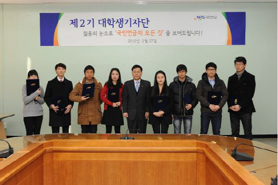 2010년 7월 7명의 국민연금 대학생 기자단이 시범적으로 활동을 시작하였고, 졸업생을 제외한 2명과 이번에 뽑은 8명을 합하여 총 10명이 함께 3월부터 활동하게 된다. 국민연금 대학생 기자단은 국민연금 제도 일반 및 개선의견, 노후준비, 노인복지, 저출산 고령사회, 가입자 및 수급자 지원서비스, 수급현황 및 사례 등에 대하여 취재·인터뷰해 기사를 인터넷 카페에 작성할 예정이다. 송진현 기자 jhsong@sportschosun.com