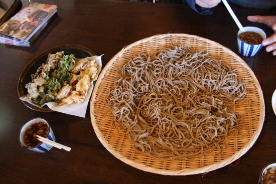 | ◇ 직접 만든 소바(메밀국수)를 간장 소스에 담궈 덴뿌라와 함께 시식할 수 있다. |