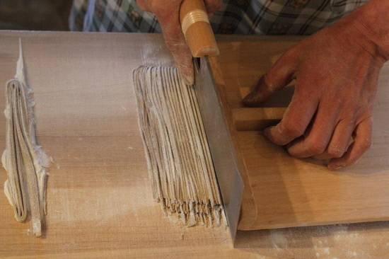 체험관에 들어서면 메밀가루와 물, 밀가루, 밀대 등 소바 만들기 재료가 준비되어 있다. 소바 만들기는 흥미 있다. 우선 준비된 메밀가루에 물을 조금씩 부어 반죽을 만든다. 소바 장인의 장단에 맞춰 뭉쳐진 반죽을 나무 밀대로 밀다 보면 반죽은 얇고 넓적한 사각형모양이 된다. 얇게 편 반죽을 겹쳐 도마에 올려놓고 손목 힘을 적절하게 이용해 일정한 두께로 썰어내면 소바만들기가 완성된다. 조금은 굵고 일정하지 않게 썰어도 소바를 직접 만들어서 먹는 맛이 쫄깃하면서도 부드럽다.
