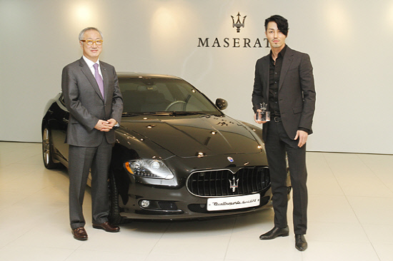 마세라티 공식수입업체 ㈜FMK는 29일 신사동 전시장에서 홍보대사 위촉식을 갖고 차승원에게 마세라티의 플래그십 세단인 '콰트로포르테 스포츠 GT S'를 전달했다.