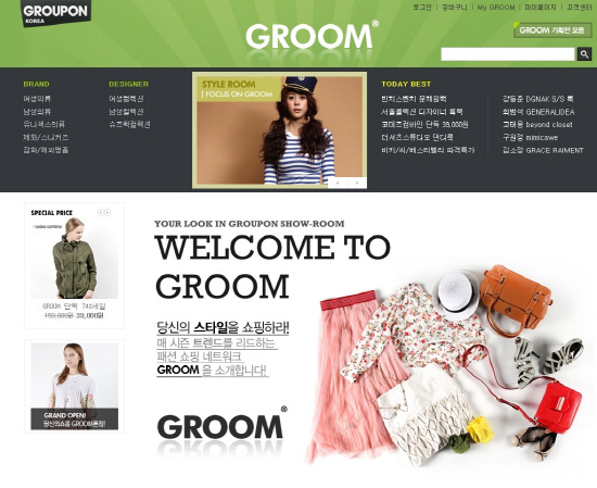 그루폰코리아(대표 황희승, www.groupon.kr)가 패션 쇼핑 네트워크 '그룸(GROOM, www.groom.kr)'을 론칭했다. 패션 쇼핑 네트워크 '그룸(GROOM)'은 개별적인 패션상품의 판매와 패션 스타일 제안을 지향하는 패션종합몰이다. 기존의 패션쇼핑몰이 소비자가 원하는 패션제품 구입을 위한 공간이었다면 '그룸(GROOM)'은 백화점브랜드, 디자이너상품, 소호제품 등을 한자리에서 소개하며 다양한 패션 아이템의 믹스매치를 통해 감각적인 룩을 제시한다. 스타일 제안에는 패션 디자이너 최범석, 고태용, 강동준, 홍은주 등의 서울컬렉션 디자이너와 스타일리스트가 다수 참여하며 전문성을 가미할 예정이다. 그루폰코리아 황희승 대표이사는 "그루폰코리아는 한국 소비자의 패션상품에 대한 관심과 스타일링 팁에 대한 높은 니즈를 반영하여 패션 쇼핑 네트워크 그룸을 론칭하게 됐다"며 "그룸의 성공적인 론칭이 국내 소셜커머스업계에 새로운 발전방향을 제시하는 계기가 되기를 바란다"고 말했다.