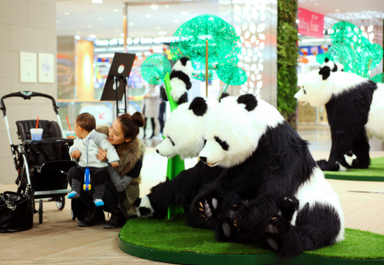 롯데몰 김포공항은 지난 2월 말 기린 전시를 시작으로 최근에는 팬더, 캥거루 등 아이들이 좋아하는 동물들을 추가하면서 동물원으로서의 면모를 과시해 나가고 있다. 롯데몰에는 실제 동물과 동일한 크기의 캥거루, 기린, 팬더, 표범 등 다양한 동물인형 총 67점을 배치해 동화 속 판타지 같은 실내 동물원을 연출했다. 동물 전시는 5월말까지 계속된다. 송진현 기자 jhsong@sportschosun.com