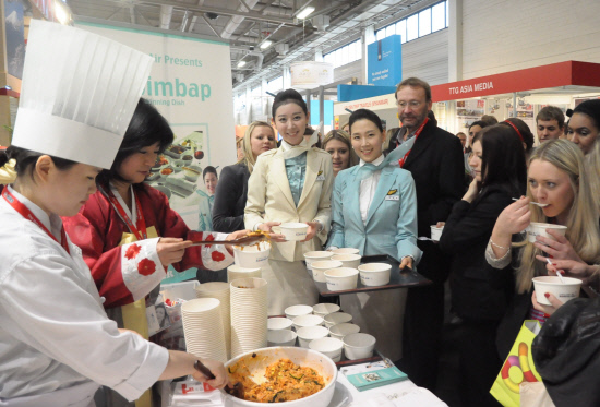 대한항공의 한식 기내식인 비빔밥과 별미인 인삼닭찜이 독일인들의 입맛까지 사로잡았다. 대한항공은 현지시간으로 3월 7일부터 8일까지 양일간 독일 베를린 국제박람회장에서 열린 '2012 베를린 국제관광 박람회(ITB, Internationale Tourismus Boerse)'에서 독일 현지 관람객들을 대상으로 비빔밥과 인삼닭찜을 선보여 큰 반향을 일으켰다. 대한항공의 한식 기내식 전문 조리사가 비빔밥과 인삼닭찜의 조리 장면을 관람객들에게 보여주고, 완성된 기내식을 대한항공 객실승무원들이 직접 관람객들에게 나눠주는 순서로 진행됐다.