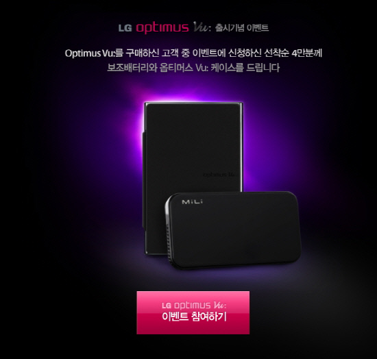 LG전자가 '옵티머스 Vu:(뷰)' 출시를 기념해 구매 고객에게 특별 사은품을 증정한다.