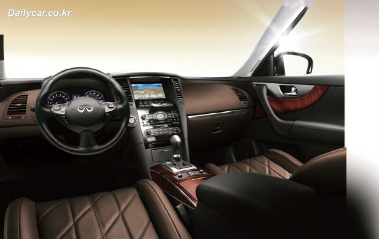 실내는 큰 변화가 없다. 센터페시아 정중앙에 박힌 전통적인 인피니티 아날로그 시계, 고급 단풍나무 트림과 함께 알루미늄 재질로 마감된 센터페시아와 기어박스 등은 전작에 비해 업그레이드된 모델임을 유난히 강조하고 있다.