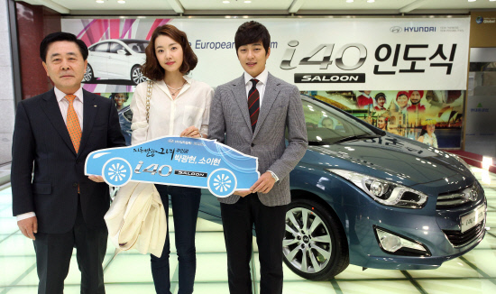 현대자동차(회장 정몽구)는 12일 서울 계동사옥에서 KBS 주말 드라마 '자체발광 그녀'의 주연배우인 박광현과 소이현의 i40살룬 '구입차량 인도식' 행사를 가졌다고 밝혔다.