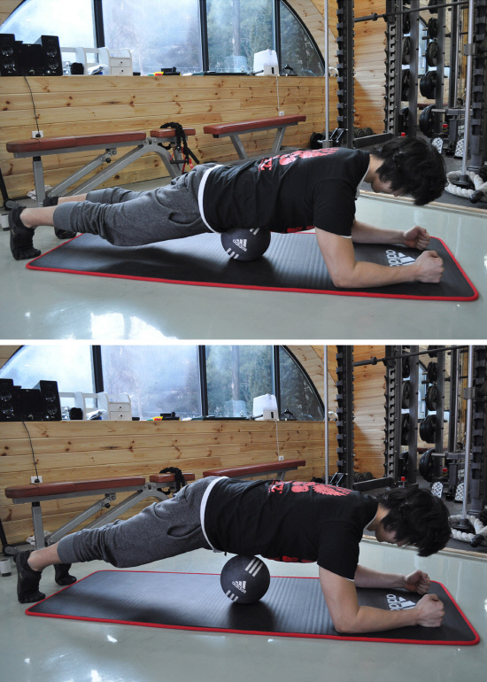 복부의 힘을 키우자-메디슨볼 플랭크 운동
