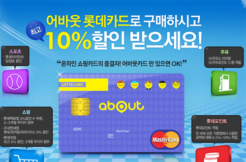 이 외에도 '어바웃-롯데카드'는 백화점,면세점, 할인점, 외식업체 등 롯데 계열사 이용시멤버십 할인혜택과 무이자 서비스를 비롯 가맹점 롯데포인트 적립 혜택, SK주유소에서 리터당 50원 적립 혜택을 담고 있다. 카드 발급과 자세한 내용은 어바웃홈페이지를 통해 확인 및 이용 가능하다.