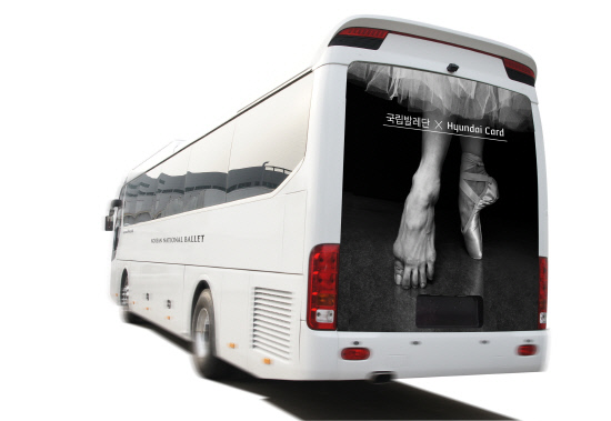 현대캐피탈-현대카드는 20일 예술의 전당에서 국립발레단의 문화예술 소외계층 대상 '찾아가는 국립발레단' 공연 및 전국 순회공연 후원을 위해 최고급 리무진 버스를 직접 디자인해 기부했다고 밝혔다.사진은 현대캐피탈-현대카드가 기부한 버스 이미지.