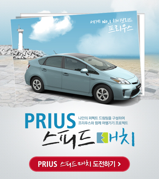 오는 4월 15일까지 실시되는 '프리우스 스피드 매치' 의 이색 게임 이벤트는 '토요타 페이스북 (http://www.facebook.com/toyotakorea)'에서 '프리우스 스피드 매치 도전하기' 버튼을 클릭한 후 14쌍의 동일한 프리우스 그림을 모두 찾아내는 방식이다. 14쌍의 동일한 프리우스 그림을 모두 찾아 최단 기록을 달성한 도전자 총 80명에게는 프리우스 2박 3일 렌탈권, 디지털 카메라 등 다양한 선물이 제공된다.