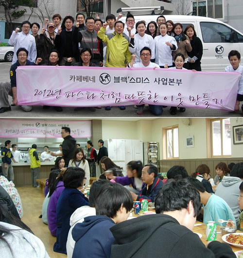 블랙스미스의 임직원이 보육원 아이들과 따뜻한 파스타를 나눴다. 지난 24일 토요일 오전, 블랙스미스 사업본부 임직원 30여 명은 서울시 관악구 남현동에 위치한 상록보육원(원장 부청하)을 찾아 이 곳 주방에서 아이들과 보육교사 등 80여 명이 함께 할 수 있는 파스타를 직접 조리하여 점심식사를 하고 이후 원내 청소활동과 아이들과 놀아주기 등의 프로그램을 펼치며 보람있는 시간을 보내고 돌아왔다.
