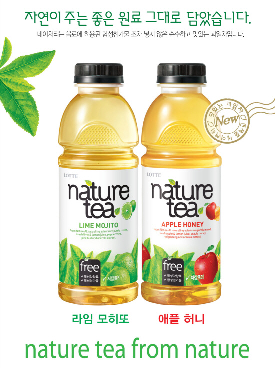 롯데칠성음료(대표이사 이재혁)가 자연이 주는 좋은 원료 그대로 만든 과일차음료 '네이처티(nature tea) 라임모히또와 애플허니'를 26일 출시했다.(용량 및 예상 편의점가격 : 500ml 페트 2,000원)