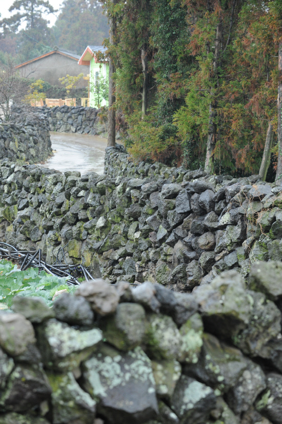 대체로 여행길에서 비를 만나면 일정에 큰 차질을 빚기 마련이다. 하지만 제주에서는 비오는 날에도 나름 운치 있는 여정을 꾸릴 수가 있다. 제주의 잘 가꿔진 숲을 찾거나, 다양한 테마의 박물관도 대안이다. 하지만 그보다는 돌담이 아름다운 마을을 한 바퀴 둘러보는 것도 추억에 남을 일이다. 특히 비에 젖은 현무암 돌담은 또 다른 운치를 자아낸다. 전통 흙담이나 도심의 시멘트 담장이 흉내 낼 수 없는 그런 목가적 풍광을 그려낸다. 투박한 제주의 돌담은 주민들의 삶 그 자체다. 돌담 속에서 태어나 돌담 속에서 살다가, 죽어서도 돌담과 연을 맺는다. 제주시 애월읍 하가리를 찾으면 이처럼 제주, 제주사람들의 기질과 자취를 고스란히 담아내는 정겨운 돌담 풍광을 접할 수 있다.