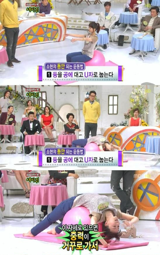 최근 전파를 탄 MBC '세바퀴'에서 박소현은 동안비결로 짐볼운동을 소개했다.