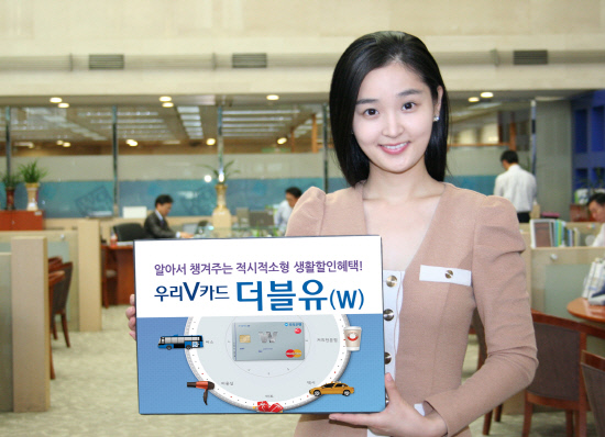 우리은행(은행장 이순우)이 직장인 생활 패턴에 따른 시간대별로 할인서비스를 제공하는 신용카드 '우리V카드 더블유(W)'를 선보였다.