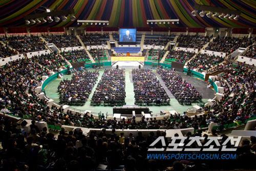 박옥수 목사가 지난 8일 '다시 사신 주 예수'를 주제로 서울 장충체육관과 부산 KBS홀에서 기쁜소식선교회 주최로 부활절 기념 예배를 진행했다. 부활절은 예수님이 십자가에 못 박혀 죽으신 뒤 사흘 만에 부활하신 것을 기념하는 날. 예수님을 따르던 제자들이 그의 죽음으로 실의에 빠져 있었는데, 누구도 깨뜨리지 못한 사망의 권세를 깨뜨리고 부활함으로써 제자들에게 새로운 소망을 일으켜 주었던 날을 기념하는 것이다. 부활절을 기념하기 위해 사람들은 예쁜 색깔로 물들인 달걀을 주고받는데 이번에 참석한 분들도 주최측에서도 2만개가 넘는 달걀을 준비해 참석자들에게 나눠줬다.