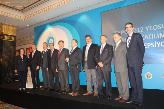 터키 정부가 '2012여수엑스포' 참여에 따른 의미 부여와 터키의 바람몰이를 위한 리셉션을 13일(오후 7시 30분· 현지시각) 이스탄불 소재 제일란 인터콘티넨털 호텔에서 성대하게 개최했다. 출정 리셉션에는 '에르투우룰 규나이(Erutugrul Gunay)' 문화관광부 장관과 '에르도안 바이락타르(Erdogan Bayraktar)' 환경도시개발 장관, '메흐디에케르(Mehdi Eker)' 식품농림축산부 장관, '부락 그루셀' 여수 엑스포 대사, '알리 귀렐리(Ali Gureli)' 이콘 이벤트(Ikon Event) 회장 등 터키의 각계 각층 인사 300여 명이 참석해 성황을 이뤘다.