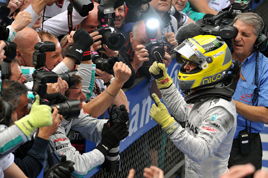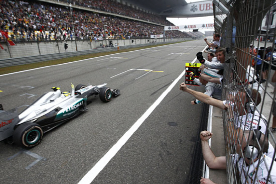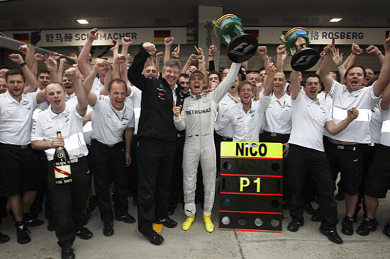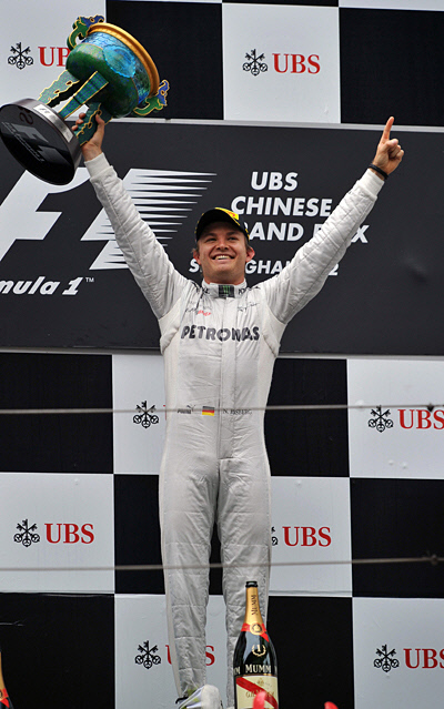 '황제' 미하엘 슈마허의 동료 니코 로즈버그(독일, 이상 메르세데스AMG)가 2012 F1 중국 그랑프리에서 폴투피니시로 생애 첫 정상에 올랐다.