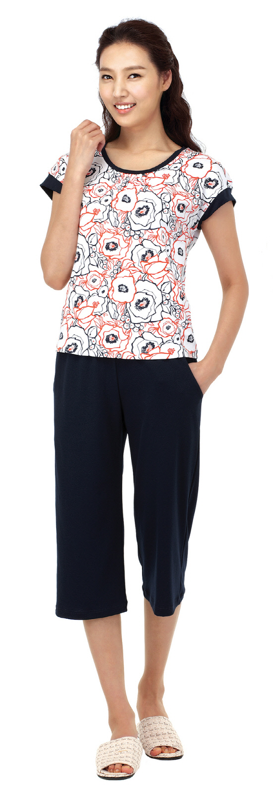 디자인은 실내복과 외출복을 겸할 수 있도록 만들어지기 때문에 일반 파자마와는 많이 다르다. 티셔츠는 아예 심플한 단색을 사용하거나 화려한 프린트를 이용해 하의와 여러 가지 매치를 가능하게 디자인되어 있다. 바지의 경우는 가벼운 외출복으로도 활용할 수 있도록 좀 더 세련된 디자인으로 구성된다. 폭이 넓은 헐렁한 느낌이 아니라, 입었을 때 다리 선이 길어 보이는 부츠컷(허리에서 무릎까지는 폭이 좁은 데 반해 무릎 아래부터는 폭이 넓어지는 디자인) 라인이나 윗부분이 봉긋한 배기팬츠 라인을 사용하기도 한다.