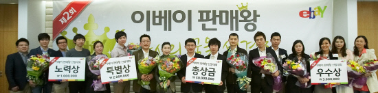 작년 9월부터 올 2월까지 6개월간 진행된 '제 2회 이베이 판매왕' 경진대회에서는 대학생, 한류상품 판매자 등 총 600여명의 셀러가 참가해 총 32만여개의 제품 거래, 대회 전체 누적판매금액만 800만달러였다. 2008년부터 이베이 판매를 시작해 이번 대회에서 대상을 수상한 이상현씨는 "소비자들의 사소한 불만에도 성심성의껏 답변한 노력이 빛을 봤다"는 수상 소감을 밝혔다. 이씨는 "최근부터는 이베이코리아의 지원에 힘입어 미국 일변도에서 호주로 무대를 넓힌 만큼 앞으로도 사업을 다각화할 예정"이라고 덧붙였다.