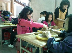 이날 전북지역주민 20여명의 봉사자가 지역 특산물시장과 한옥마을 등을 안내하고, 이들과 함께 도자기와 부채 만들기 체험도 했다.