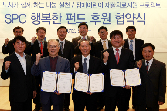 SPC그룹은 2일 서울시 대방동 삼립식품 사옥에서 푸르메재단과 후원 협약식을 갖고 첫 후원금 1천만원을 전달했다.