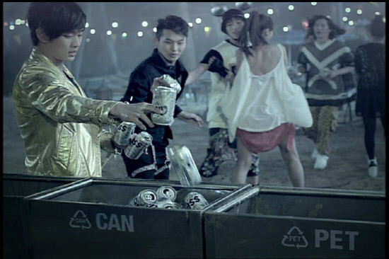 이번 시보광고에서 '카스' 모델 김수현은 친구들과 신나게 맥주를 즐긴 후 "후레쉬하게 즐기고, 개념 있게 리싸이클(Recycle)할 시간"이라고 외치며 빈 캔들을 하나 둘씩 모아 솔선하여 분리 수거함에 갖다 넣는다. 이를 통해 즐길 땐 즐기더라도 생활 속에서 잊지 않고 환경보호를 실천하는 '개념 있는' 젊은이들의 모습을 보여준다.